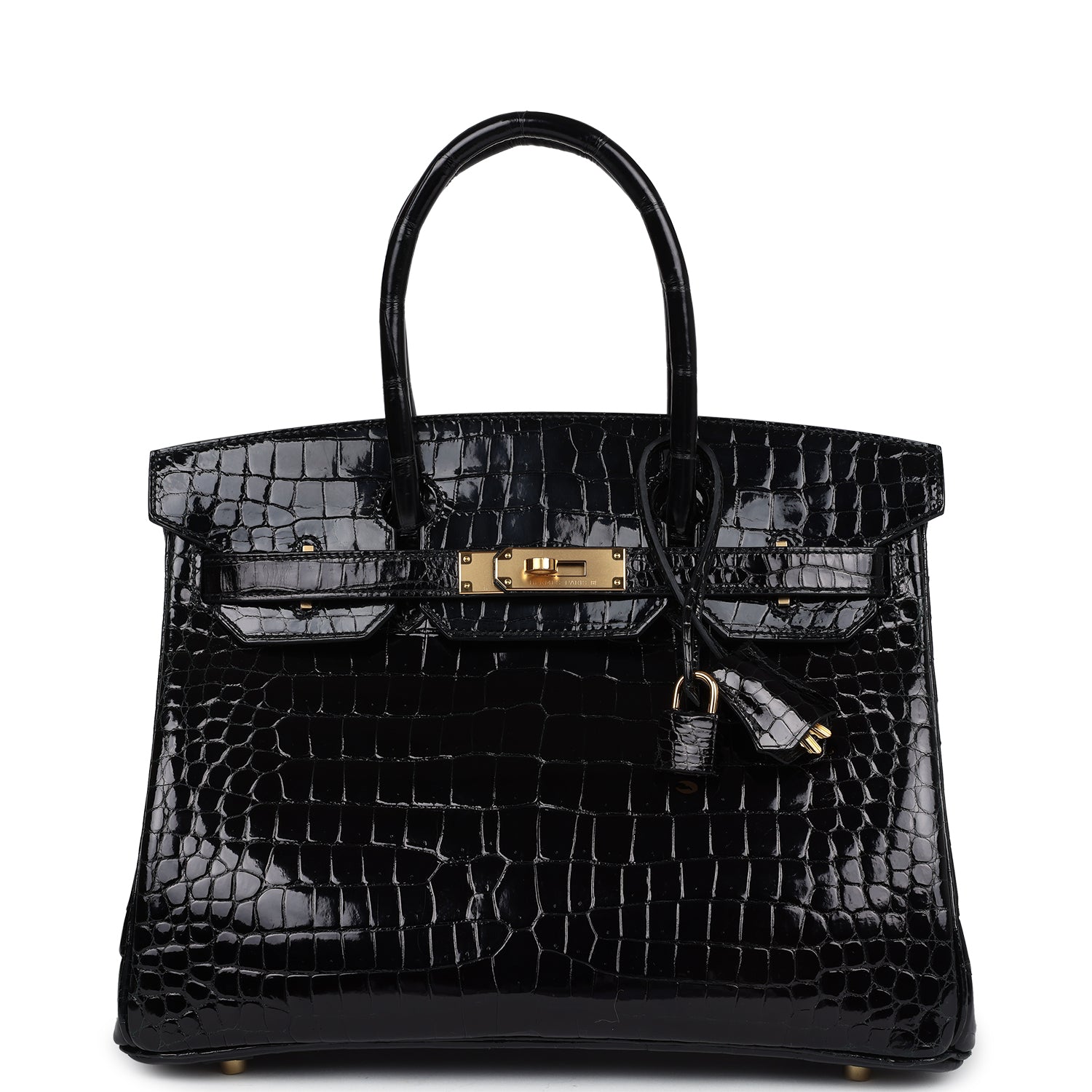Hermès Birkin 30 Black Shiny Porosus Crocodile Gold Hardware