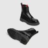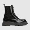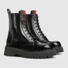 Original House details first introduced in the 1950s are reinterpreted through a romantic lens. The Web stripe—inspired by the equestrian world—has become the hallmark of a cultured club and is reintroduced in new forms. This boot is crafted in shiny leather and defined by a rubber lug sole.