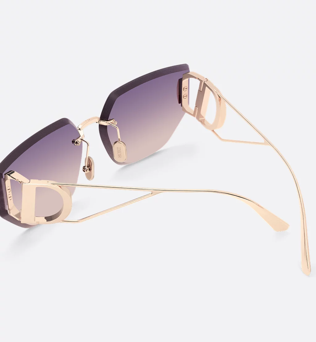 The 30Montaigne B3U sunglasses stand out with an elegant butterfly shape and couture spirit. The frameless style is enhanced by gold-finish metal temples with a functional CD signature inspired by the hallmark clasp on the namesake bag. Completed by gradient purple-to-nude lenses, the statement design lends a modern Dior touch.