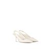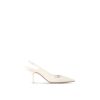 Crafted from supple lambskin, the 6AM slingback pump is an elegant style with a pointed toe and a curved, mid-height heel. The upper features a decorative strap in patent leather, which is embellished with an LV Circle accessory and two tiny studs. This model has an adjustable back strap with a small, square buckle.