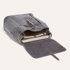 front zip pocket containing: card pocket, multi-use pocket, pen pocket, zip access to the main compartment, leather gendarme key