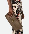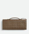 • Intrecciato leather top handle clutch with metallic knot closure • Six card slots, one additional pocket • Material: Lambskin • Lining: Calfskin • Color: Pinecone • Hardware: Brass finish • Height: 13 cm | 5.1” • Width: 31 cm | 12.2” • Depth: 3 cm | 1.2”