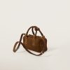 This Arcadie suede bag expresses a concept of fashion as a means for translating a reaction to current reality into a particular shape. The light padding gives a voluminous appearance and cosmopolitan style to the accessory. The lettering logo, in the same color as the hardware, crosses the boundaries between function and decoration and helps define the distinctive and iconic aesthetic of the top-handle bag.