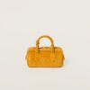 This Arcadie suede bag expresses a concept of fashion as a means for translating a reaction to current reality into a particular shape. The light padding gives a voluminous appearance and cosmopolitan style to the accessory. The lettering logo, in the same color as the hardware, crosses the boundaries between function and decoration and helps define the distinctive and iconic aesthetic of the top-handle bag.
