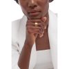 Drawing its inspiration from the world’s most renowned amphitheater, the Colosseum, the B.zero1 three-band ring in 18 kt yellow gold is a ground-breaking statement of Bvlgari’s creative vision. Born to celebrate the future, this rendition is embellished with the sparkle of full pavé diamonds on the edges, while its distinctive spiral represents the power of new beginnings.