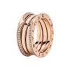 B.zero1 three-band ring in 18 kt rose gold with pavé diamonds.