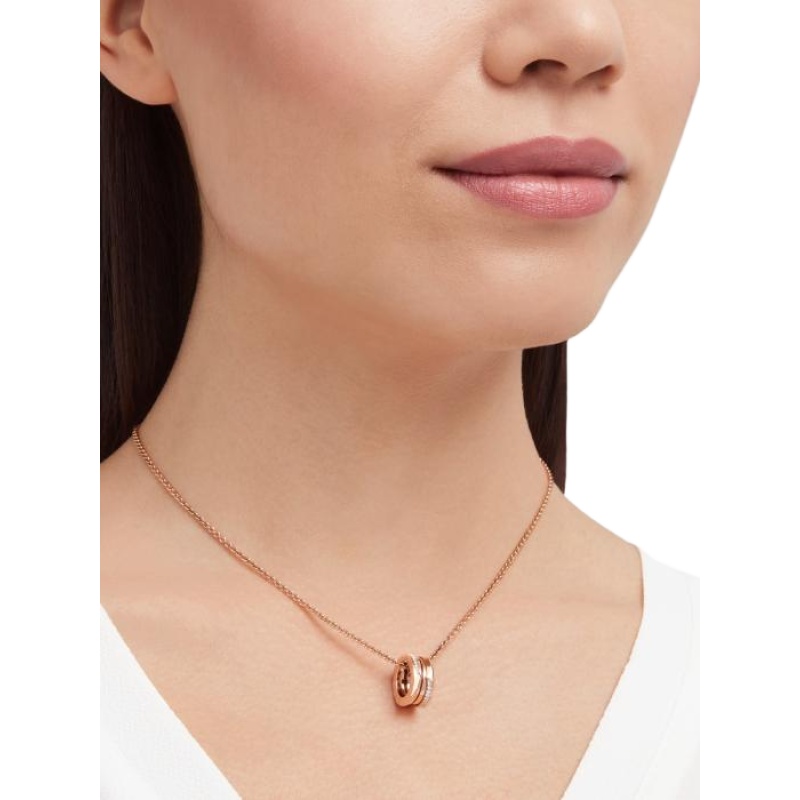 B.zero1 pendant necklace in 18K rose gold with semi-pavé diamonds.