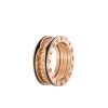 The B.zero1 Rock collection draws inspiration from the world-famous amphitheater, the Colosseum, and reflects Bvlgari’s creative vision and uninhibited style. The unique spiral design is reinterpreted with gold studs, challenging the essence of jewelry aesthetics and highlighting the freedom and forward-looking spirit of Bvlgari’s classic design. B.zero1 Rock series 18K rose gold double ring inlaid with black ceramic.
