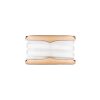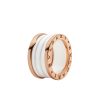 Inspired by the world-famous amphitheater, the Colosseum, the B.zero1 ring is a true expression of Bvlgari’s creative vision, challenging the very essence of jewellery design. Its unique, pure spiral shape symbolises the harmony of past, present and future – reflected in the magnificence of the Eternal City – and the pioneering spirit of the collection. B.zero1 four-band ring in 18K rose gold, adorned with white ceramic.