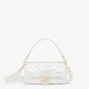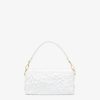 Iconic medium Baguette bag embroidered all-over with white metallic sequins in different shapes and sizes. Decorated with an FF clasp. Features a front flap, leather details, tone-on-tone bead embroidery and magnetic clasp. Single internal compartment lined in silk with zipper pocket and gold-finish metalware. The bag can be carried by hand, or worn either on the shoulder or cross-body thanks to the handle and shoulder strap, both detachable. Made in Italy