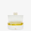 Features a front flap, leather details, tone-on-tone bead embroidery and magnetic clasp. Single internal compartment lined in silk with zipper pocket and gold-finish metalware.