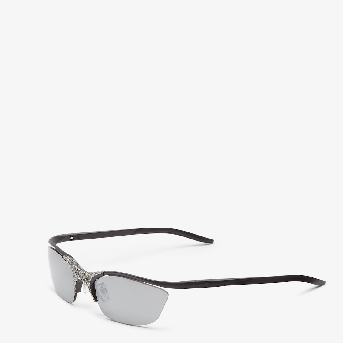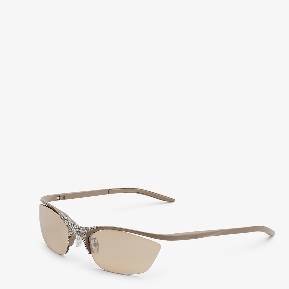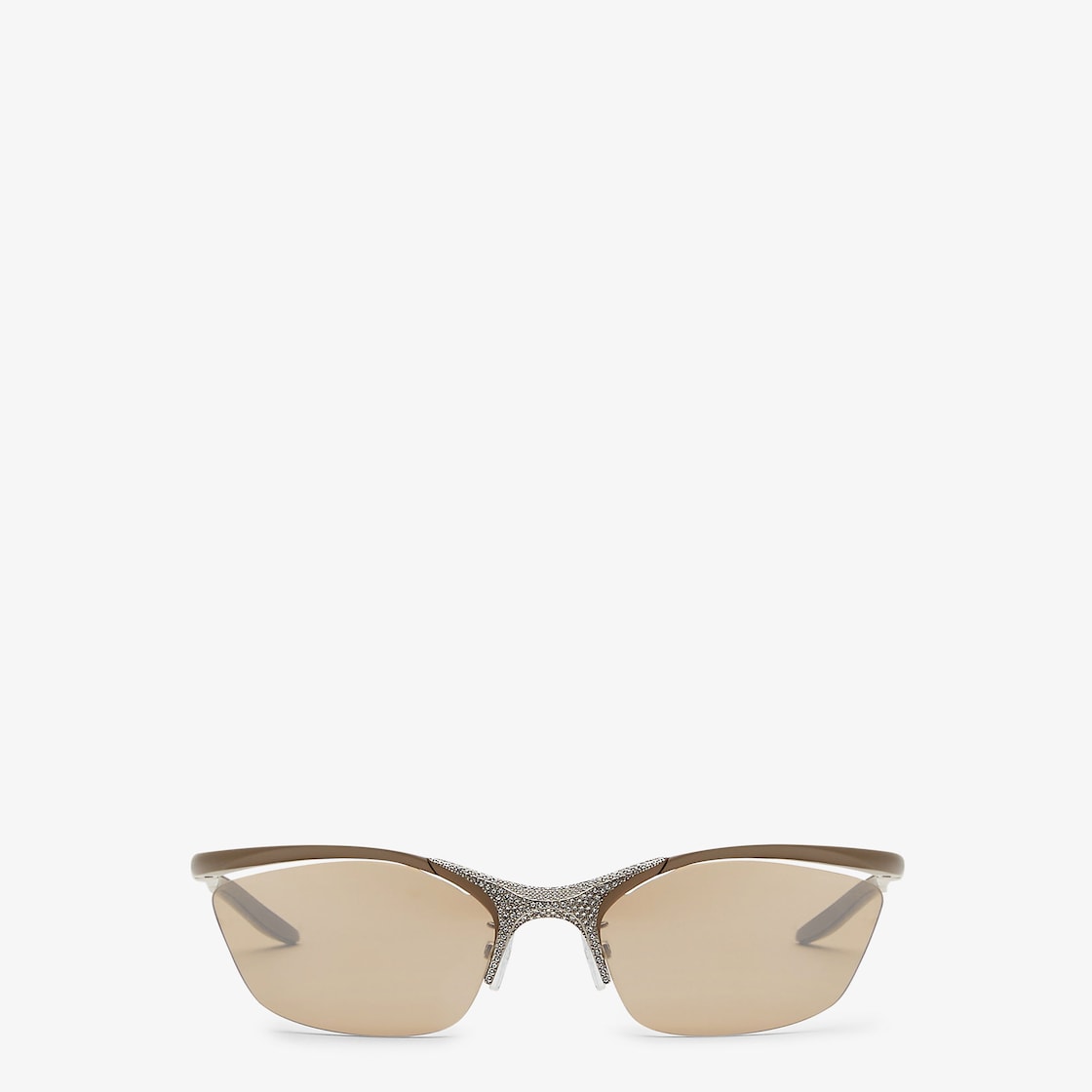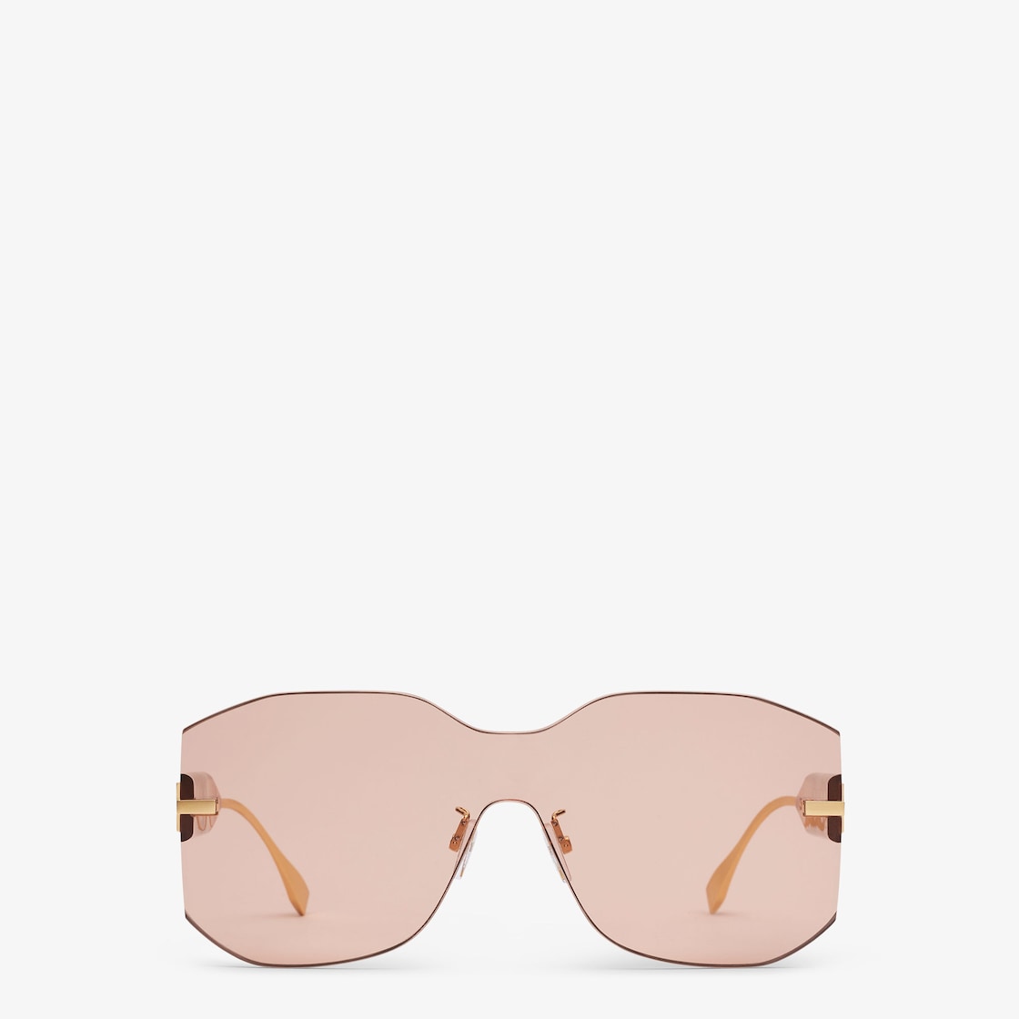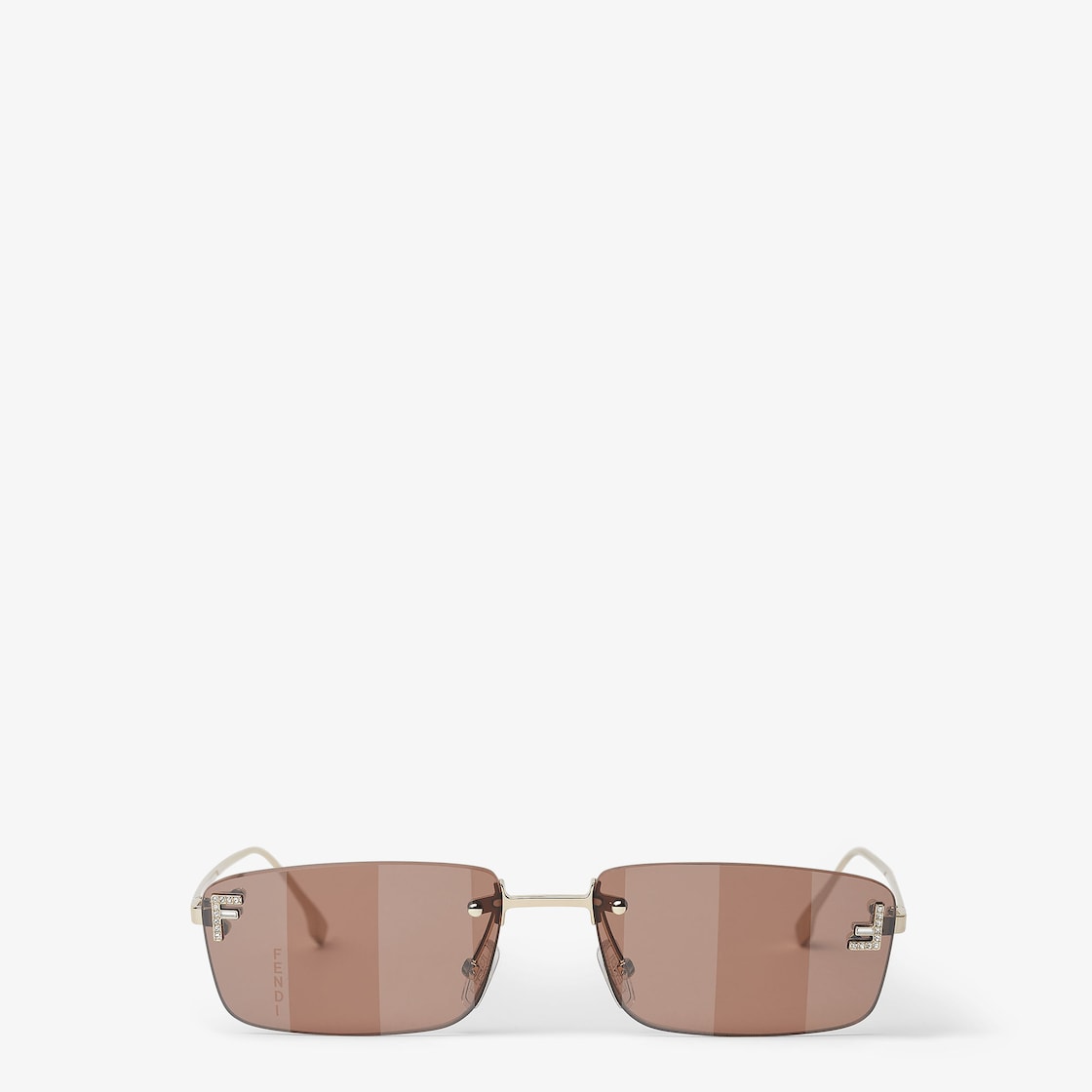 Oversized square Baguette sunglasses in golden metal with FF Baguette logo on the temples. Brown lenses with gold-mirrored FF logo and adjustable nose pads. Made in Italy
