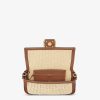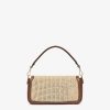 Iconic medium Baguette bag, created in 1997 which went on to become the leading It bag. Versatile and with timeless appeal, it features the iconic underarm design inspired by the French Baguette bread from which it takes its name. Made of natural-colored macramé. Trimmed in brown calfskin and embellished with an FF clasp. Featuring a front flap, magnetic clasp, one unlined internal compartment with a removable leather pocket and gold-finish metalware. The bag can be carried by hand, or worn either on the shoulder or cross-body thanks to the handle and shoulder strap, both detachable.