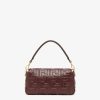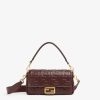 Iconic medium Baguette bag, part of the collection curated with designer Stefano Pilati, made of burgundy soft nappa leather with a three-dimensional texture embossed FF motif. Decorated with an FF clasp.