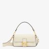Iconic medium Baguette bag, made of camellia Cuoio Romano leather embellished by hand with matching-tone stitching. Decorated with an FF clasp. Featuring a front flap, magnetic clasp, internal compartment with zip pocket and leather Selleria stamp, and vintage gold-finish metalware. The bag can be carried by hand, or worn either on the shoulder or cross-body thanks to the handle and shoulder strap, both detachable. Made in Italy