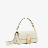 Iconic medium Baguette bag, made of camellia Cuoio Romano leather embellished by hand with matching-tone stitching. Decorated with an FF clasp.