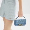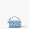 Iconic small Baguette bag made of denim-effect FF jacquard in shades of blue. Embellished with FF clasp and tone-on-tone leather details.