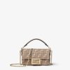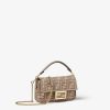 Iconic small Baguette bag made of denim-effect FF jacquard in shades of dove gray. Embellished with FF clasp and tone-on-tone leather details.