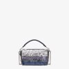 Iconic mini Baguette bag with all-over embroidery in metallic sequins of different shapes and sizes that create a gradient effect in shades of blue. Decorated with an FF clasp.