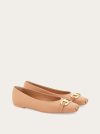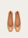 This contemporary ballet flat features a super soft patent leather upper with ruffles at the pointed tip and a new version of the Gancini buckle in golden metal for a chic look. Rubber flexible sole.