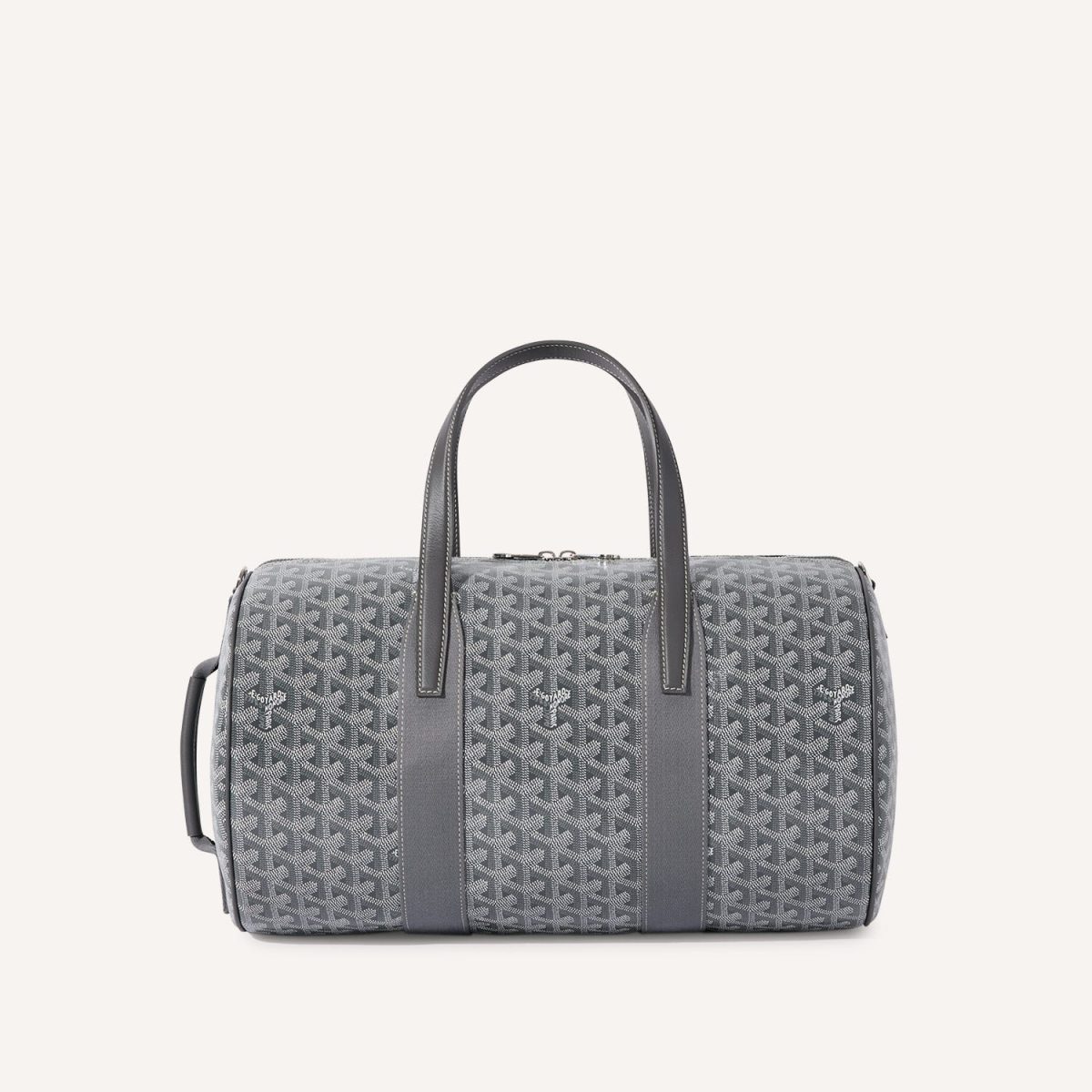Jewelry: Palladium Zipped closing system with double sliders Height of the handle(s) : 15 cm Goyardine Canvas & Chevroches Calfskin Linen and Cotton Inner Side Length: 40 cm Width: 23 cm Height: 23 cm Weight: 0.6 kg Soft and light, the Barrel 40 sports bag is the perfect companion for sports or a short getaway. It features a zip fastening system with two pull tabs to keep one's personal belongings safe. Thanks to its two central handles and lateral handle, it can be carried by hand while an additional MM strap allows the Barrel sports bag to be carried on the shoulder or cross-body.