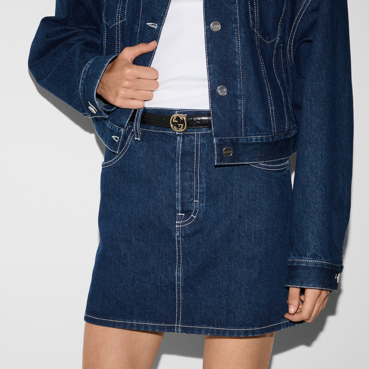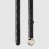 The emblematic GG motif continues to decorate leather accessories, connecting contemporary pieces to the heritage of the House. The monogram defines this belt crafted from black GG embossed leather with a soft and silky touch. The Interlocking G buckle completes the accessory with a unique feel.
