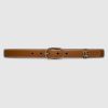 Classic leather pieces are reimagined and elevated with new details for a fresh feel. Presented in brown leather, this versatile belt is decorated with an oval buckle and finished with a Double G detail.