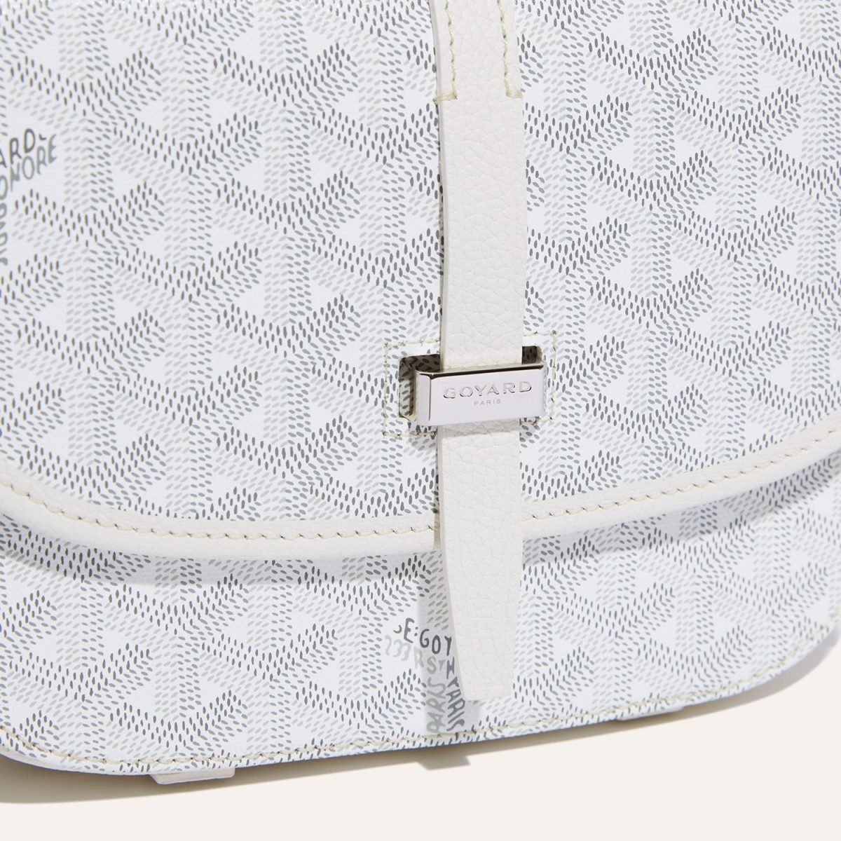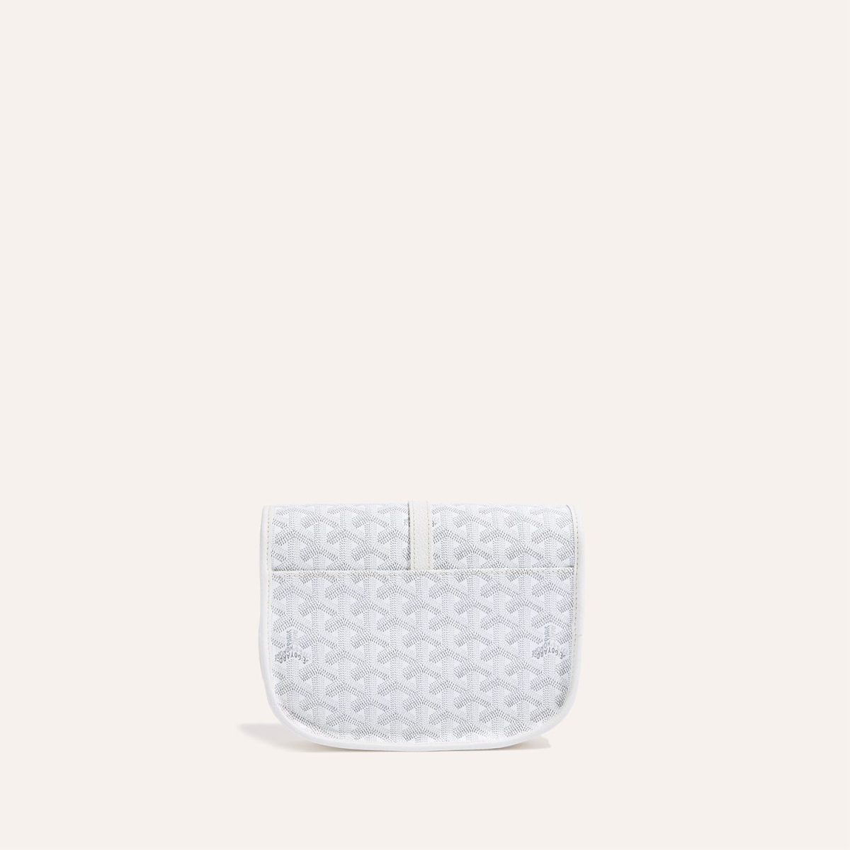 Jewelry: Palladium Leather tab and metal loop fastening system 2 inside front pockets, inside flat pocket at the back exterior flat pocket Goyardine Canvas & Decize Taurillon Leather Yellow Cotton Lining Length: 22 cm Width: 7 cm Height: 16 cm Weight: 380 g Streamlined and light, the Belvédère PM bag is perfect for many occasions thanks to its crossbody strap and accessible secure closure. Featuring outside and inside pockets, it is also very convenient for organizing your belongings.