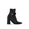 The Berlin ankle boot was a highlight of Nicolas Ghesquière’s 10th anniversary show for Louis Vuitton. This version comes in smooth calf leather embellished with a signature knot detail and silver-toned buckle. Other key details are the trim in Monogram canvas at the back and the Louis Vuitton signature hot-stamped on the high block heel.