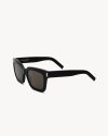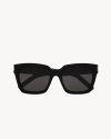 saint laurent sunglasses with thick square frame and scratch-resistant plastic lenses.