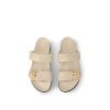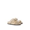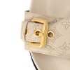 This elevated interpretation of the Bom Dia flat comfort mule comes in Mahina calf leather, distinguished by its perforated Monogram pattern, which coordinates with the leather goods collection. This model combines luxury and ease of wear, thanks to its comfortable anatomic footbed and practical velcro strap. An engraved, gold-tone buckle finishes this design.