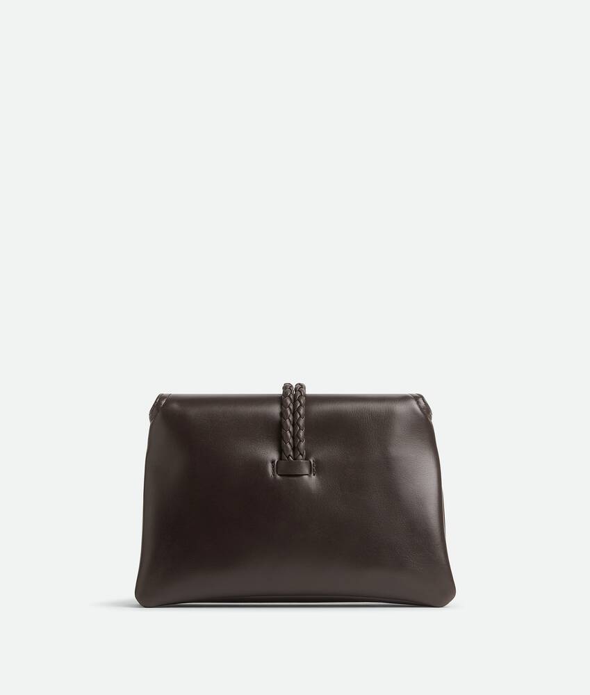 • Small cross-body bag in smooth calfskin leather with double flap and fastening system consisting of metal elements and coaxial cord • Interior flat pocket with 2 card slots • Material: Calfskin • Lining: Suede • Color: Fondant • Hardware: Brass finish • Height: 15.5 cm | 6.1" • Width: 24 cm | 9.4" • Depth: 5 cm | 2” • Strap Drop: 54 cm | 21.3"