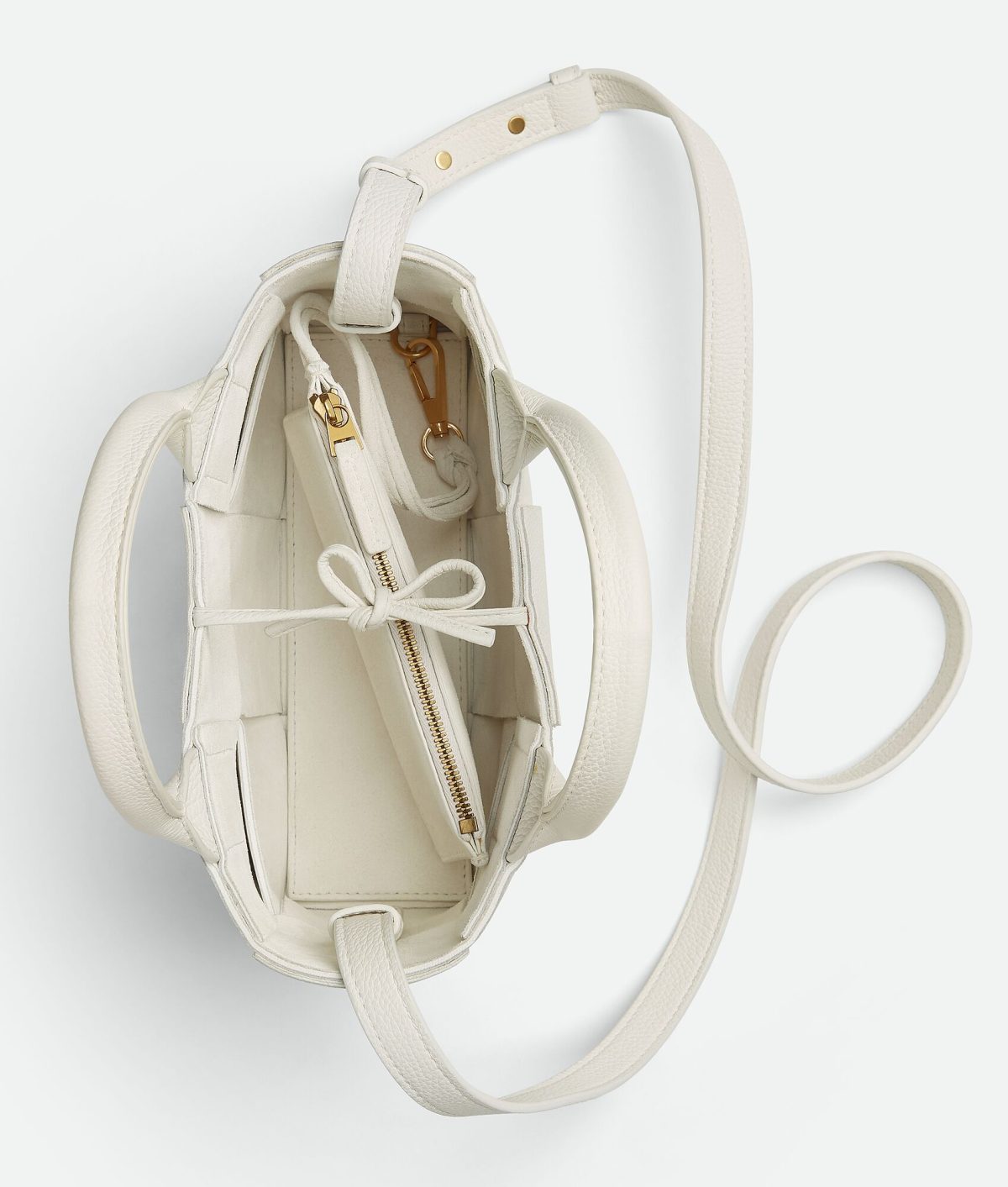 • Lining: Bonded suede Intreccio • Color: White • Hardware: Gold finish • Height: 13 cm | 5.1" • Width: 20 cm | 7.9" • Depth: 7 cm | 2.8" • Handle drop: 8.5 cm | 3.3" • Strap drop: 50 cm | 19.7"