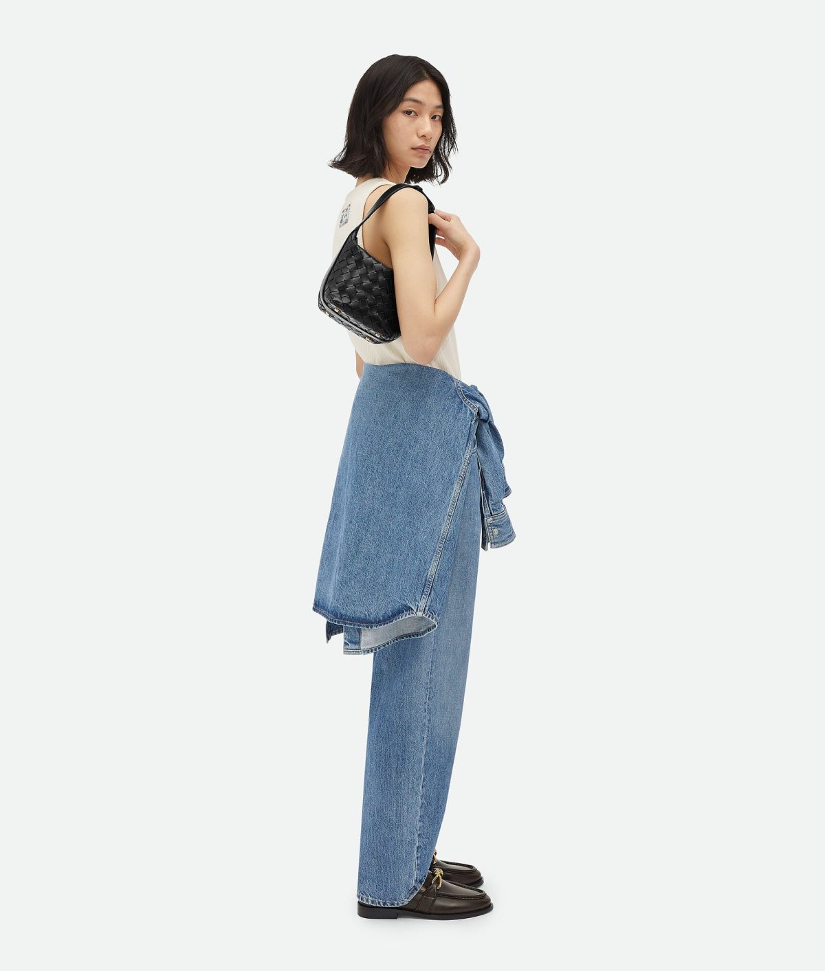 •Micro Intrecciato leather shoulder bag • Shoulder strap with adjustable press stud • One main compartment • Zip closure
