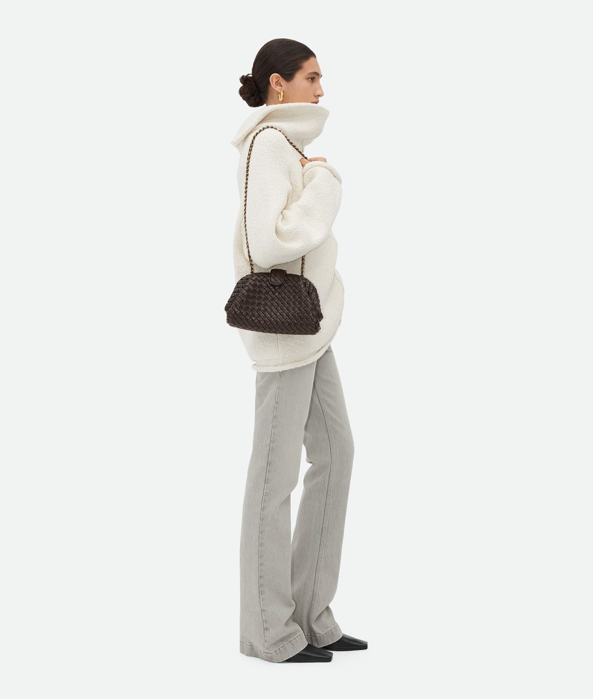 •Padded Intrecciato leather mini clutch with leather braided cross-body metal chain
