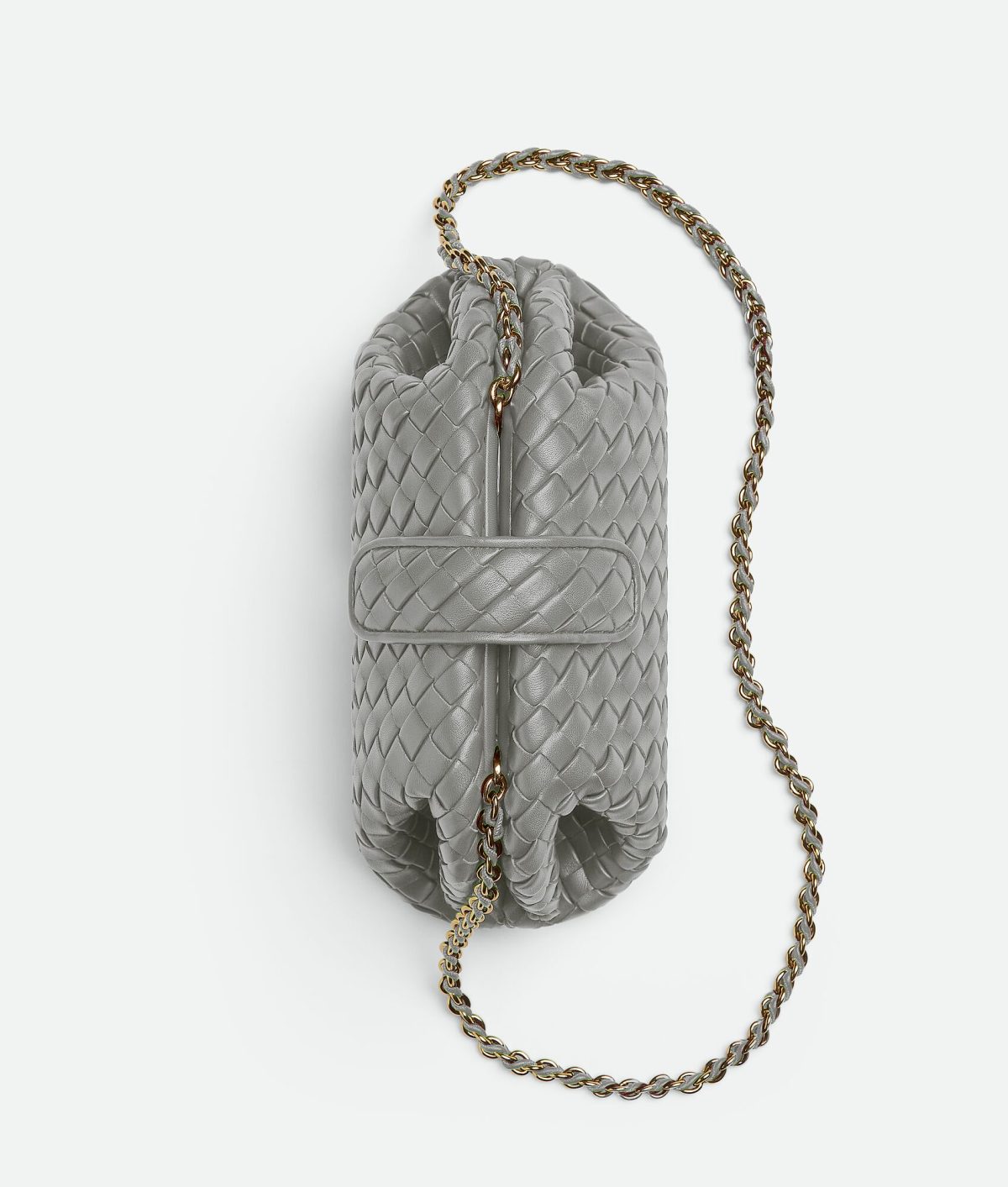 • Padded Intrecciato leather mini clutch with leather braided cross-body metal chain