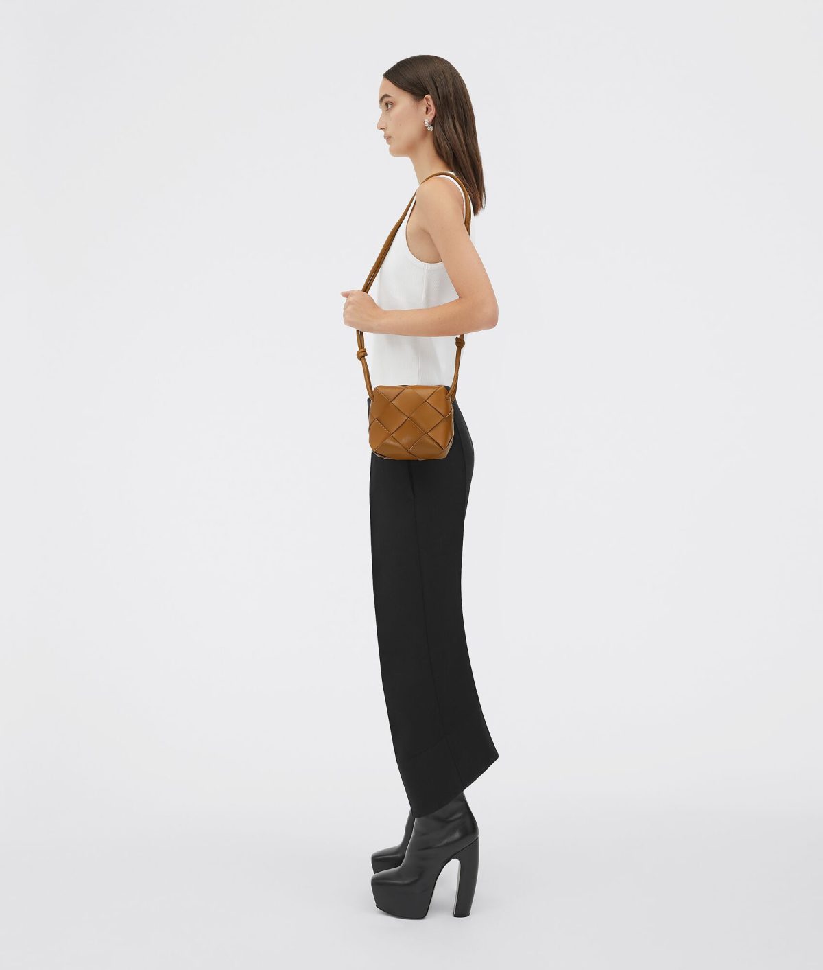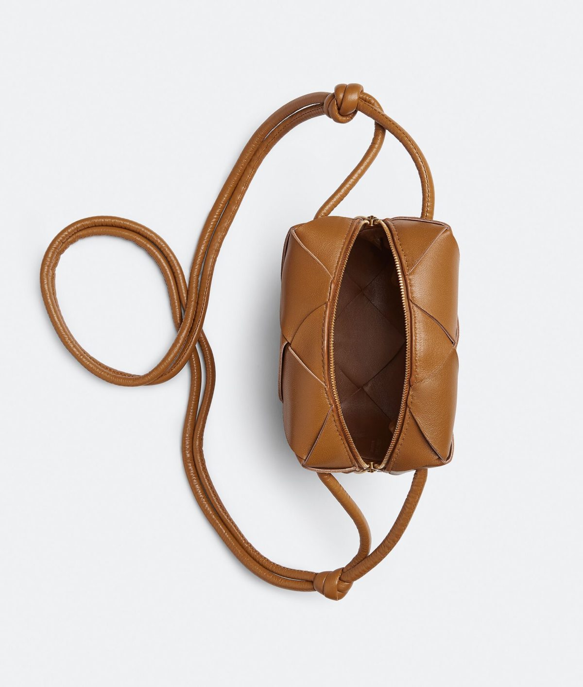 • Lining: Lambskin bonded Intreccio • Color: Camel • Hardware: Gold finish • Height: 14.5 cm | 5.7" • Width: 14.5 cm | 5.7" • Depth: 7.5 cm | 3" • Strap drop: 55 cm | 21.7"
