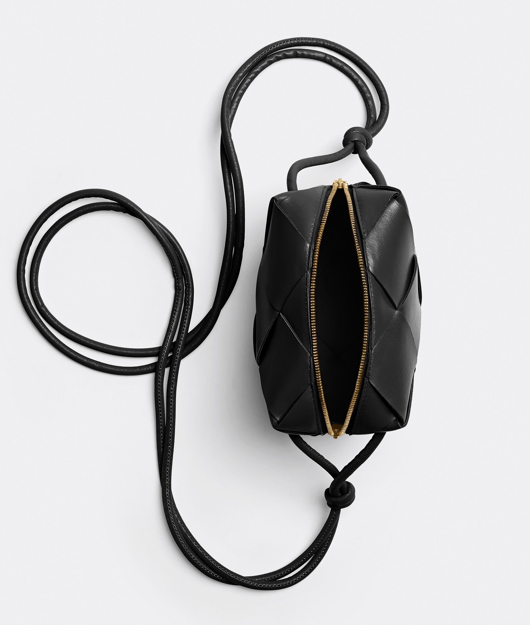 Cross-body bag realised with Intreccio craftsmanship in soft lambskin leather.