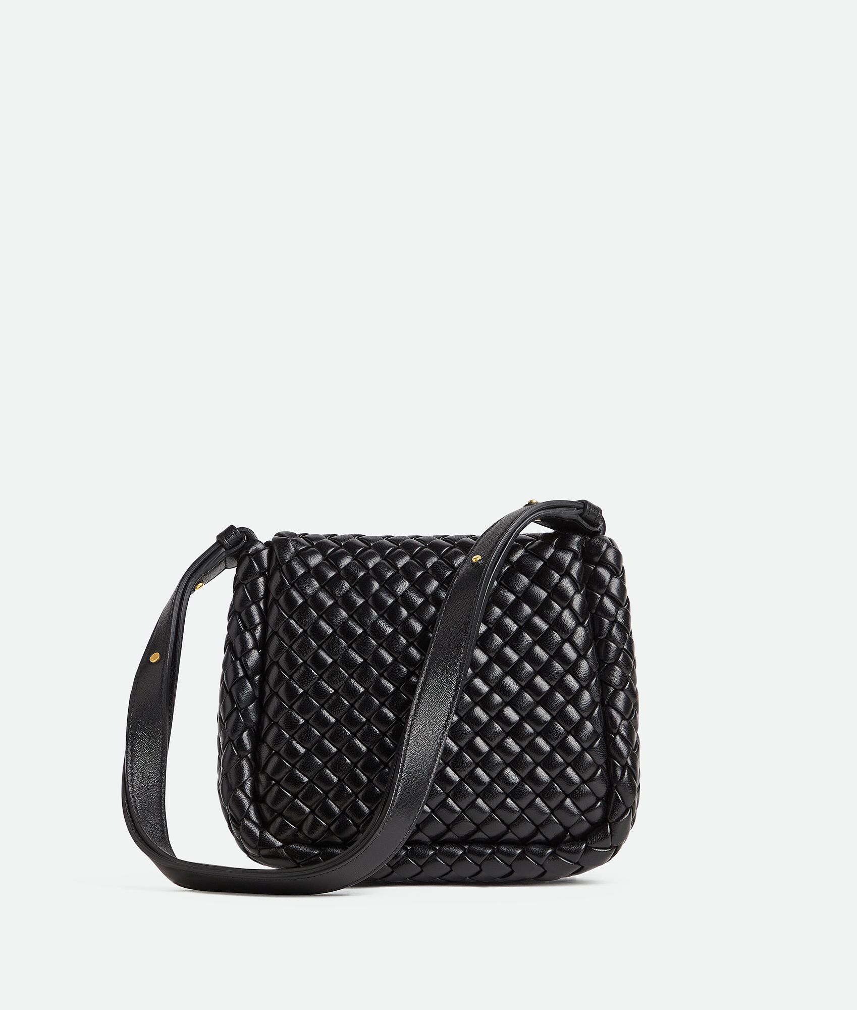 •Mini padded Intreccio leather shoulder bag • One interior zippered pocket, one open pocket • Metal closure