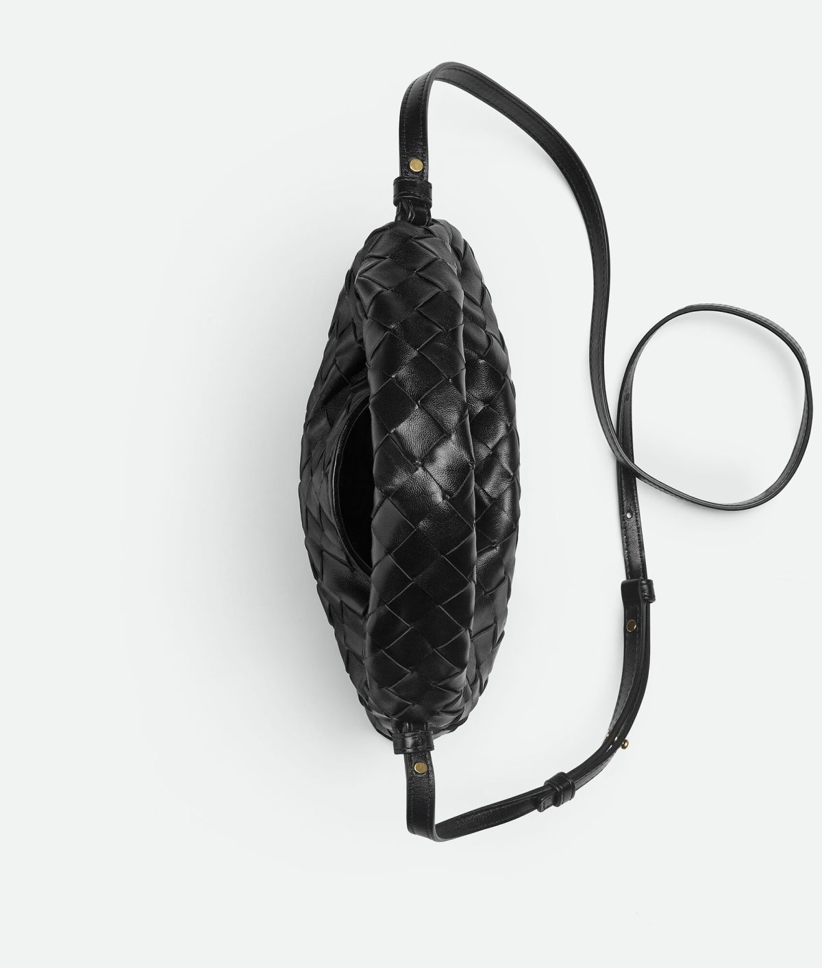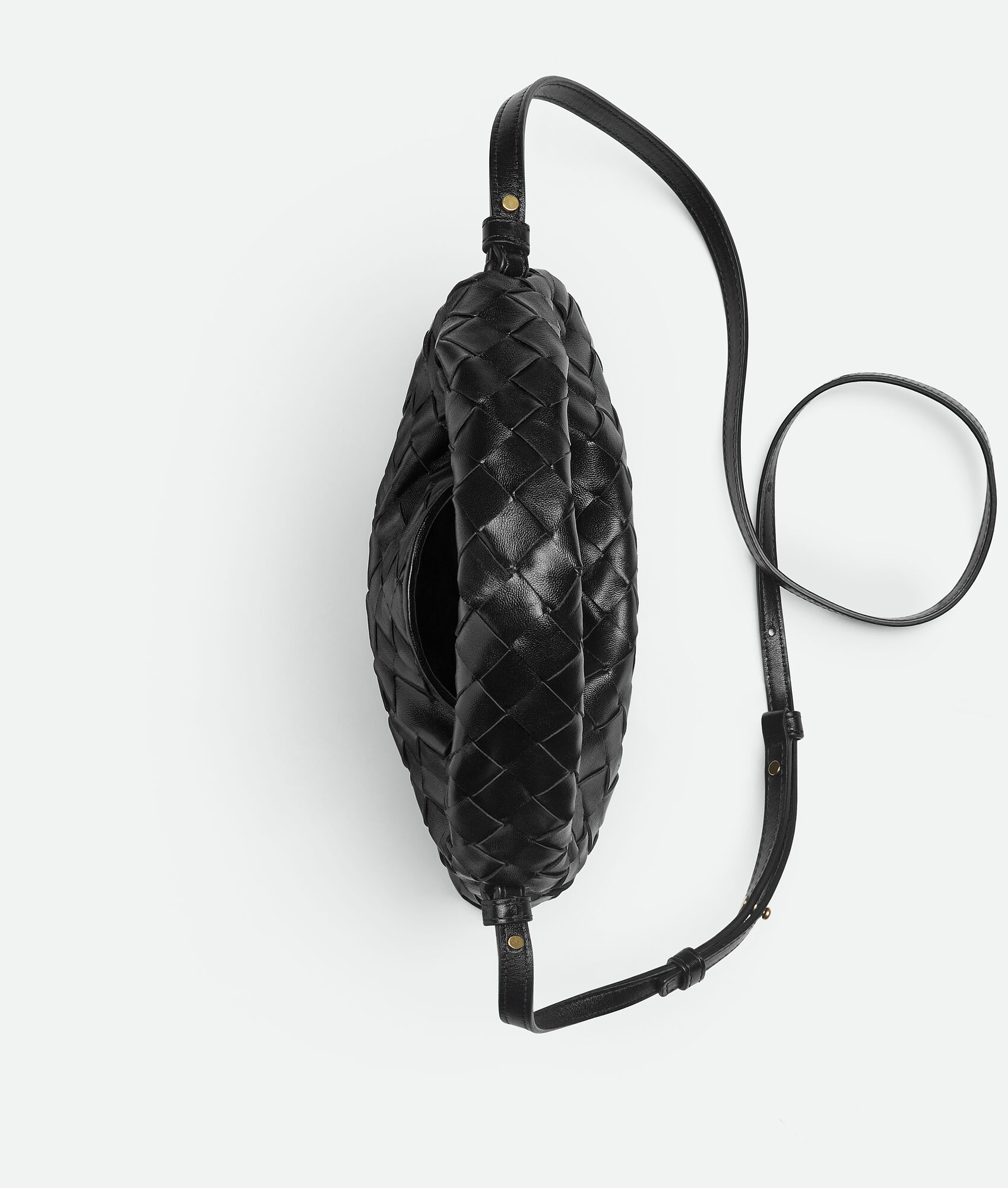 • Mini Intrecciato leather cross-body bag with detachable strap • One internal zippered pocket • Flap closure secured with magnet