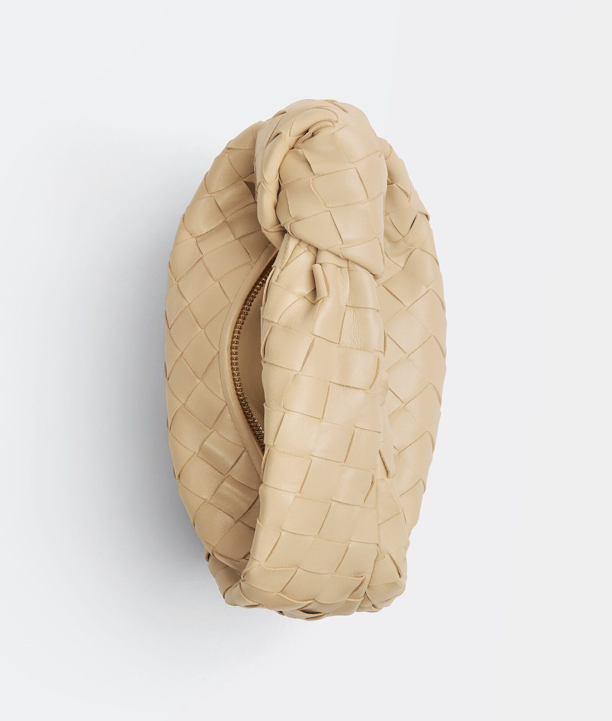 Top handle bag with rounded shape and signature knot in supple Intrecciato leather.