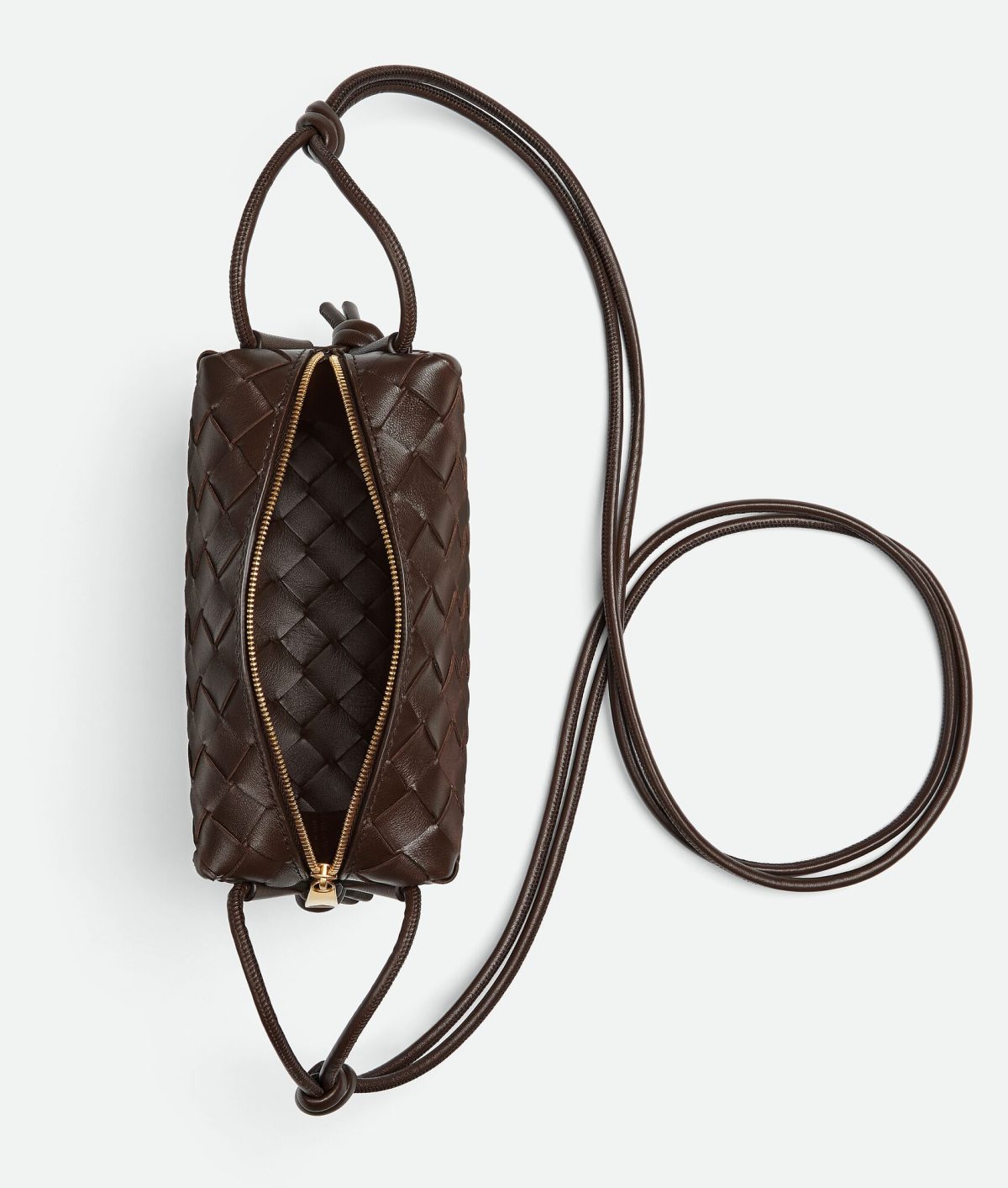 •Mini Intrecciato leather cross-body bag • Single compartment • Zipper closure