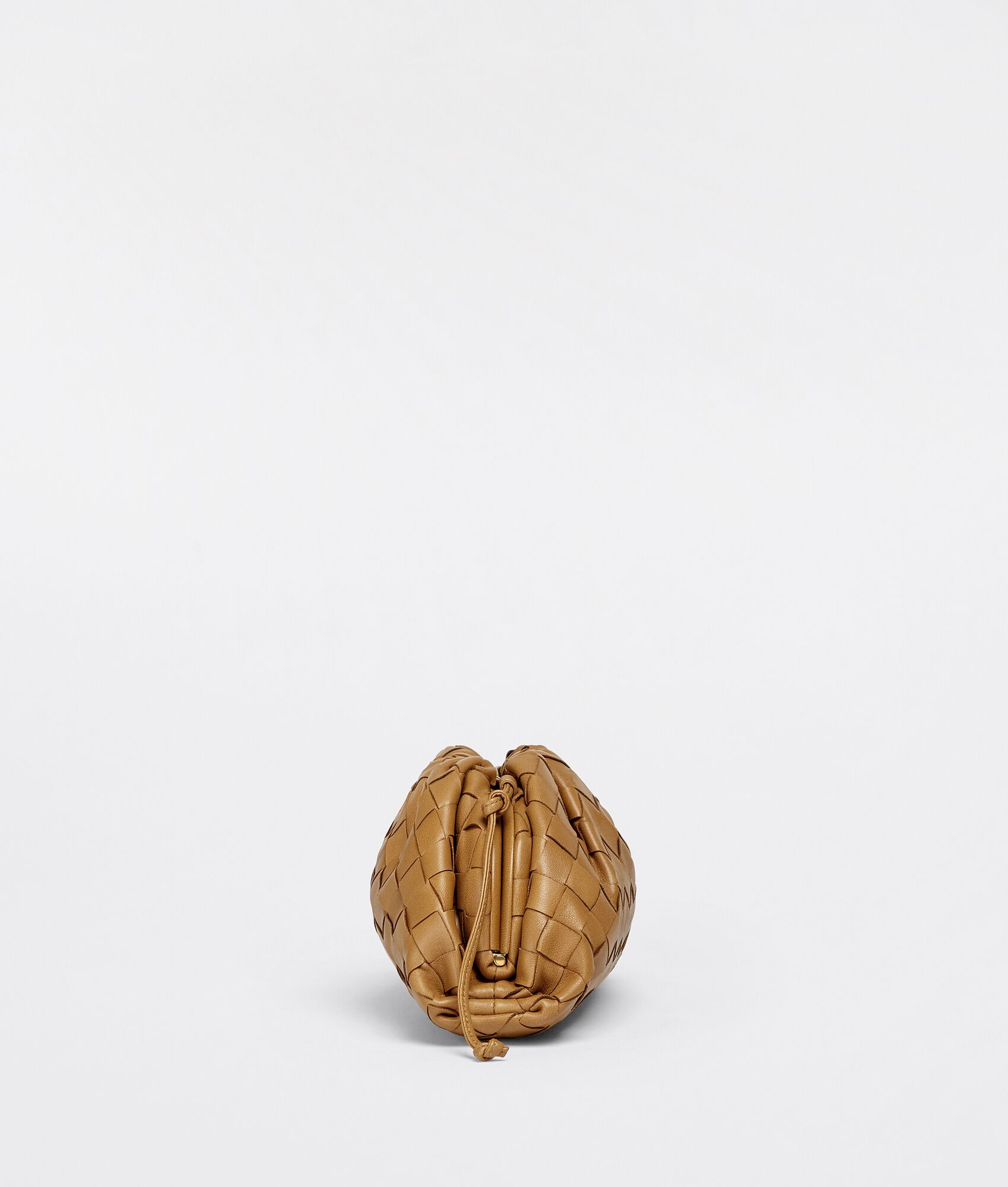 Clutch with gathered top made from lambskin leather using Intrecciato craftsmanship