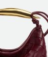 •Mini Intrecciato leather cross-body bag with metallic top handle • Single compartment • Magnetic closure • The metallic handle is crafted by artisans and showcases nuances and engraved markings making each piece unique
