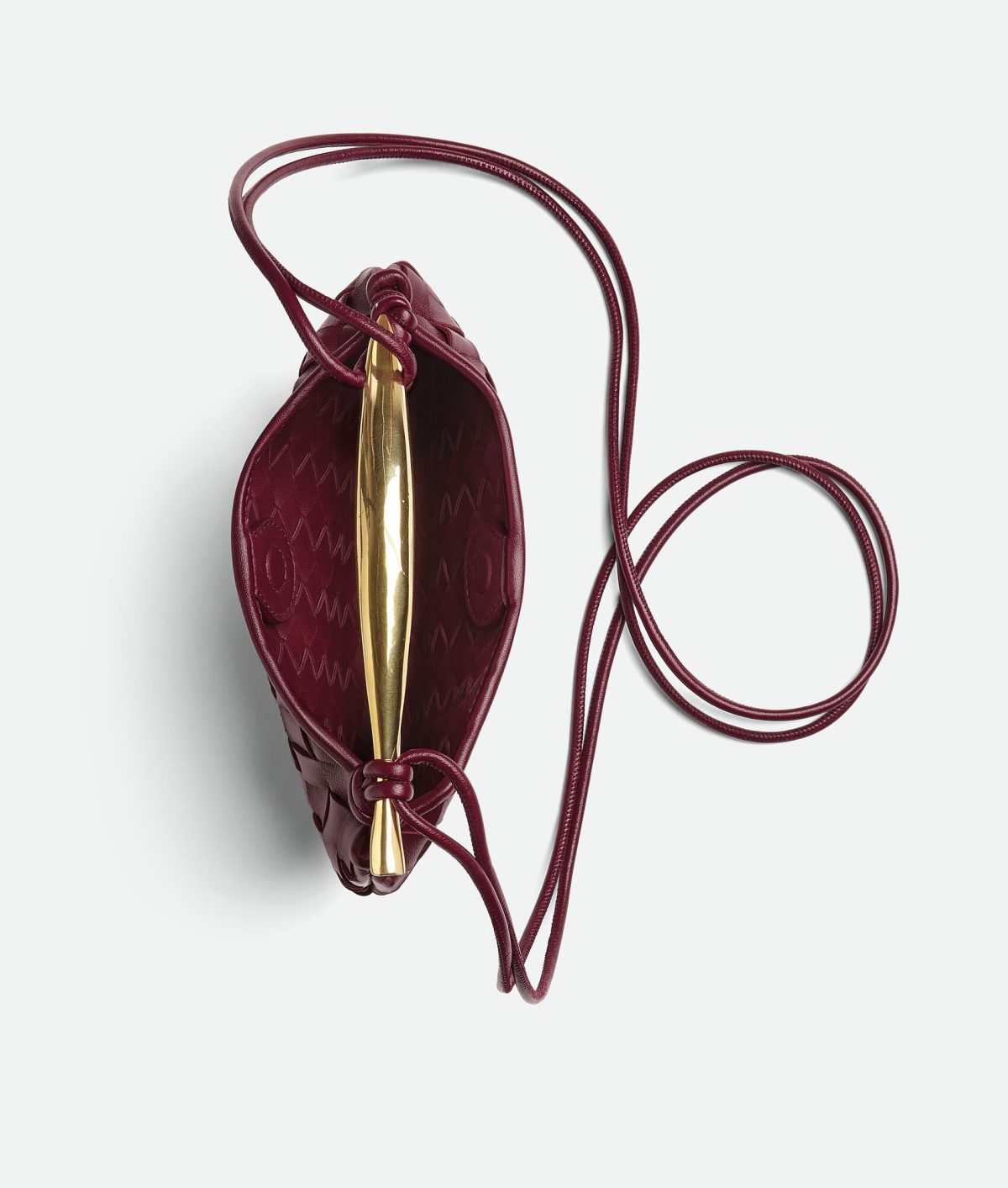 •Mini Intrecciato leather cross-body bag with metallic top handle • Single compartment • Magnetic closure • The metallic handle is crafted by artisans and showcases nuances and engraved markings making each piece unique