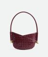 • Mini intrecciato leather shoulder bag • One main compartment • Zip closure • Material: Lambskin • Lining: Lambskin • Color: Barolo • Hardware: Brass finish • Height: 18 cm | 7.1” • Width: 28 cm | 11” • Depth: 5 cm | 2” • Handle drop: 25cm