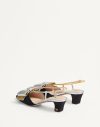 – VLogo Signature detail in antique-effect brass finish on heel