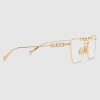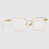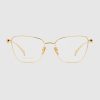 The Cruise 2025 collection comprises optical frames with signature motifs. This butterfly frame features a cut-out logo and crystals on the temples.