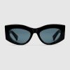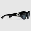 The Cruise 2025 eyewear collection blends a sleek silhouette and signature motifs in an elevated design. These sunglasses feature a cat-eye frame and Interlocking G detail on the temples.
