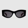 The Cruise 2025 eyewear collection blends a sleek silhouette and signature motifs in an elevated design. These sunglasses feature a cat-eye frame and Interlocking G detail on the temples.